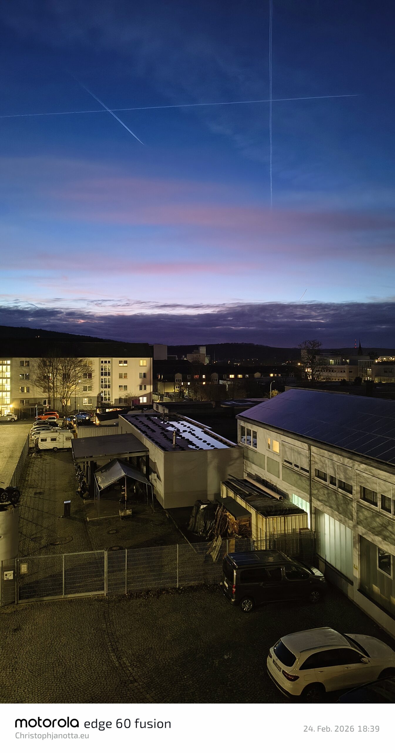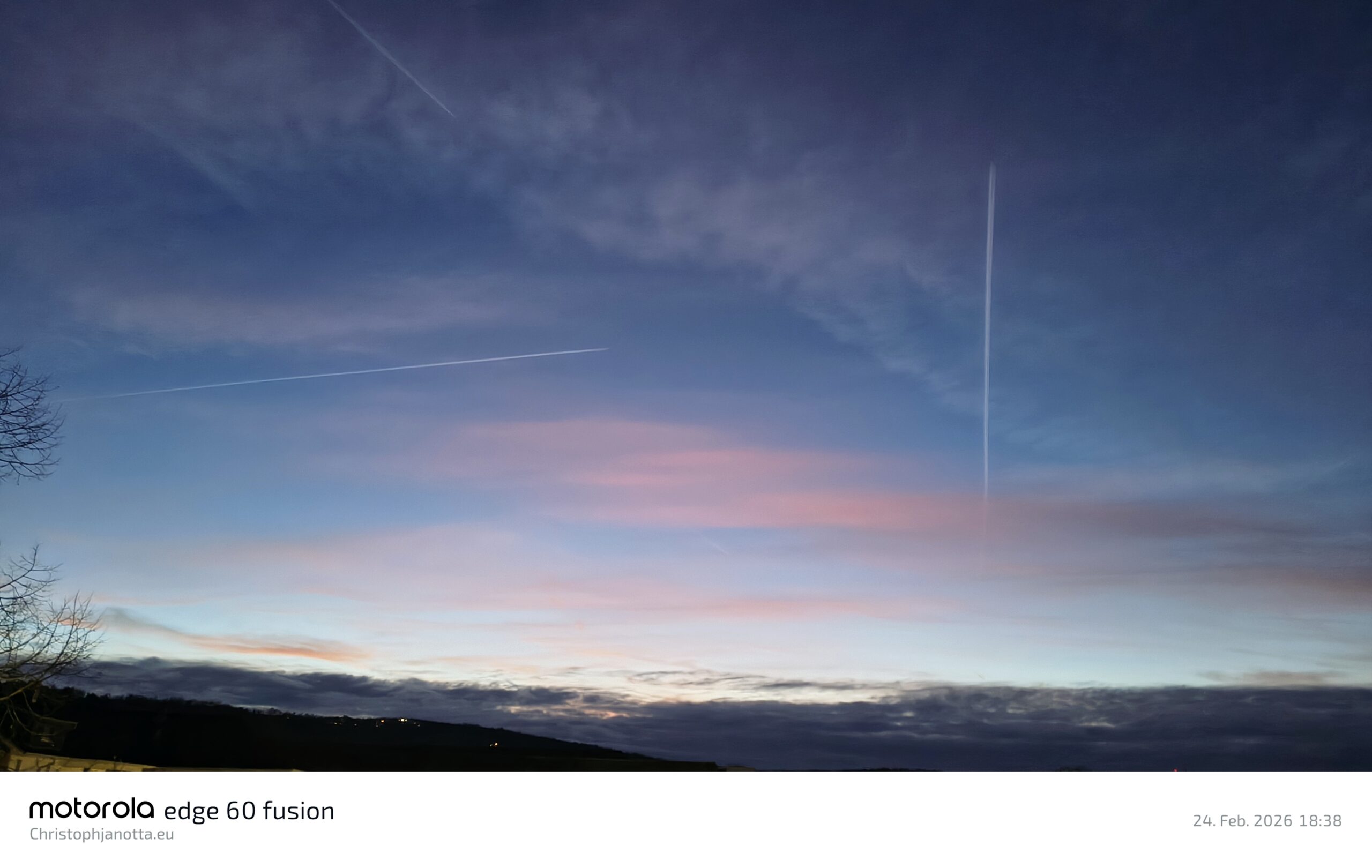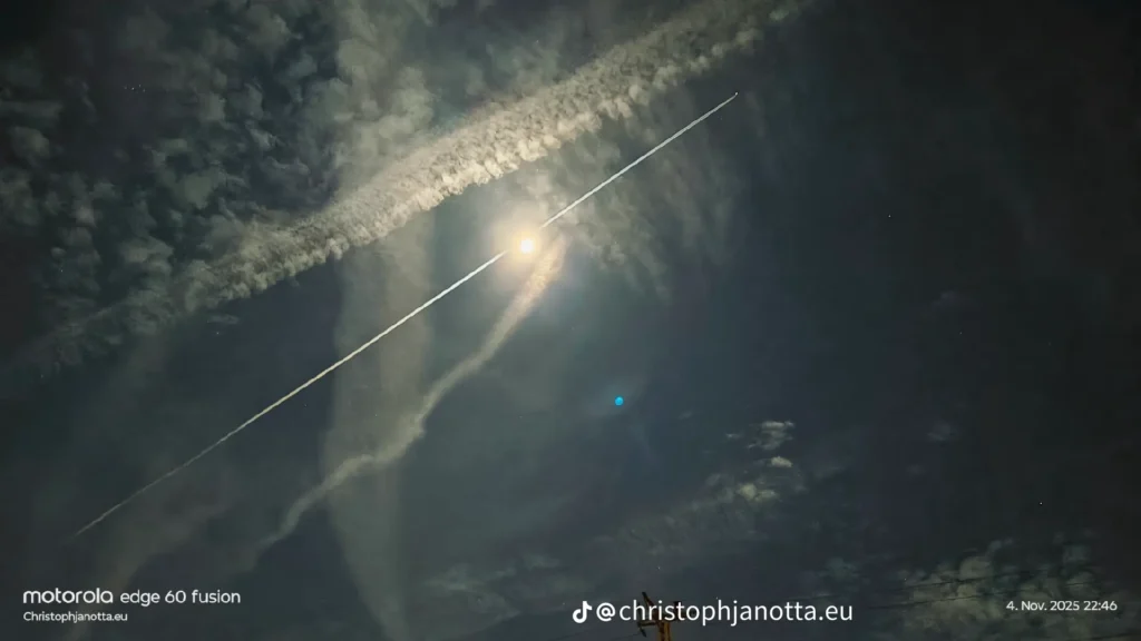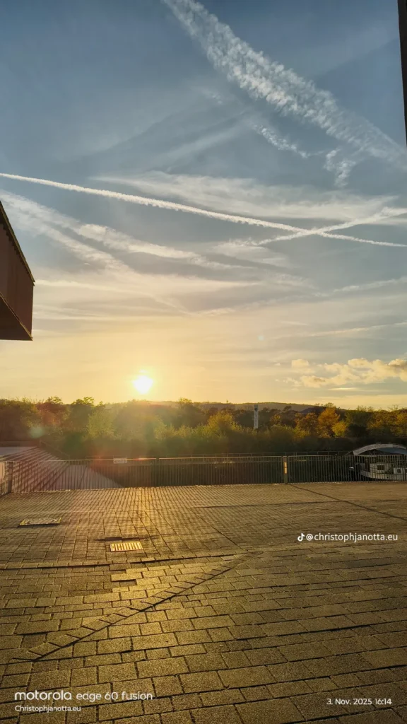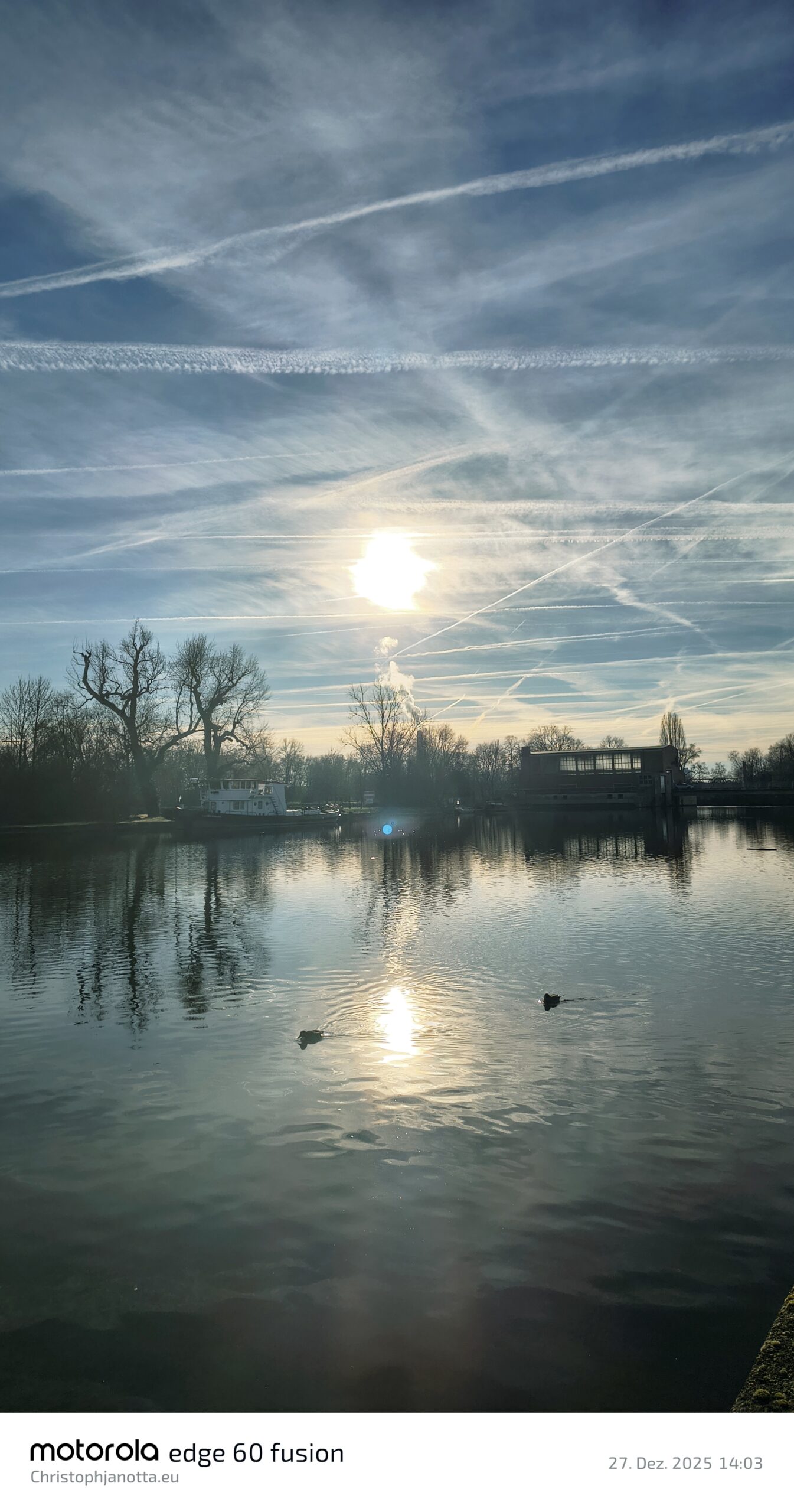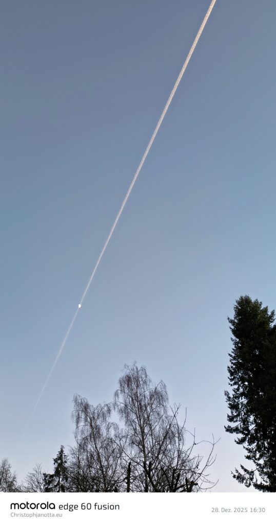 Manchmal sitze ich einfach am Main und in Schweinfurt habe ich einen Fischer kennengelernt, der seine Fische fängt. Mit ihm sitze ich manchmal stundenlang da und rede. Dabei entstehen die schönsten Bilder. Was sind das für Flugzeuge? Eurofighter sind es sicher keine, es sind sicherlich Militärische Flugzeuge, ich kann mir nicht vorstellen, das die Lufthansa solche Aufnahmen ermöglicht oder solche Manöver Fliegen kann. Es sieht auch jeden Fall spektakulär aus und es macht Spass es einzufangen mit der Kamera. Und manchmal, sieht es aus wie eine Sternschnuppe wie im neuen Jahr 2026.