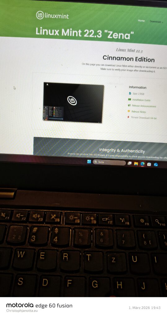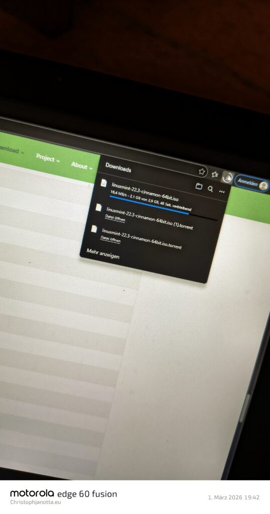 Ich zeige dir jetzt wo du die die neueste Version von Linux Mint herunter laden kannst. Ich mache das mit Screenshots aber auch mit Fotos mit einem Smartphone, warum? So kann ich dir dirkt zeigen, wo du hinschauen musst,