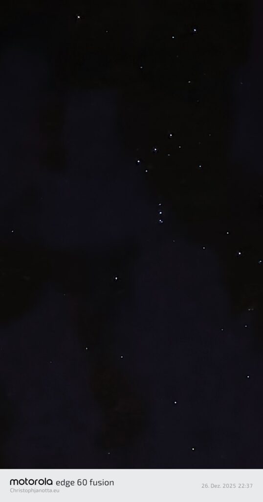 Es war der Jahreswechsel vom Neujahr 2026 wo ich Sternschnuppen fotografiert habe. Aber am 26.Dezember habe ich noch was faszinierendes gesehen. Ein Sternenbild aus der Galaxy. Sehen sie selbst wie wunderschön.